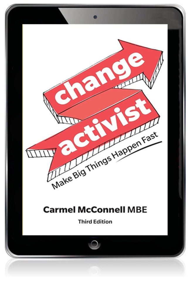 The book describes how to navigate the ups and downs of making change happen; from start up to scale up, to winning backers and allies. Through interviews with global change leaders including Big Issue co Founder Lord John Bird, Kenyan education leader Qabale Duba and Indian vaccination activist Varsha Vanugobal, Carmel unpacks the elements of successful change activists, suggests we are all capable of more, if we take action. This is a practical guide - Carmel wants everyone to find and play their part in a better future.