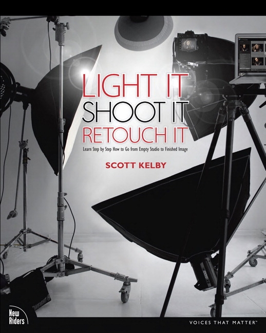 Scott Kelby, the world’s #1 best-selling author of photography books, Editor-in-Chief and Publisher of Photoshop User magazine, and Publisher of the just-released Light It magazine, has reinvented how lighting books are written by finally revealing the entire process from start to finish. You see everything from the complete lighting setup (and all the gear used), to the shoot (including all the camera settings and a contact sheet of the progression of the shoot), to the all-important part that most books don’t dare include–the post-processing and retouching in Photoshop. This book also breaks new ground in the visual way it teaches you the lighting setup. There aren’t any sketches or 3D models–you see the lighting layout in a full-page photo, taken from above during the live shoot, so you can see exactly where everything’s positioned (the subject, the photographer, the lighting, the background–you name it–you see it all). Plus, you’ll see side, over-the-shoulder, and more behind-the-scenes views, so you can absolutely nail the lighting every time.