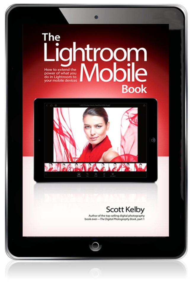 The Lightroom Mobile Book, first shows you how to get up and running quickly. Then, comes the fun stuff, like telling Lightroom on your computer which collections you want access to over in Lightroom Mobile. Plus, you’ll learn how to manage your collections, add Pick flags and star ratings, move images, play slide shows, and a bunch of other important stuff you’ll want to know right up front. Then, you’ll learn how to edit your images in Lightroom Mobile, using the same Basic panel features found in the desktop version of Lightroom–it’s the same sliders that do the same thing, and it’s even in the same order. You’ll also learn how to easily crop images, as well as use the in-app camera. You’ll learn step by step how to set up Lightroom on your desktop and mobile device, so that during a shoot, you can hand your client your tablet and not only can they see the images coming in live as you shoot, they can make their own Picks, comments, and even share the link with someone at a different location, so they can be part of the shoot, and the approval process, too!